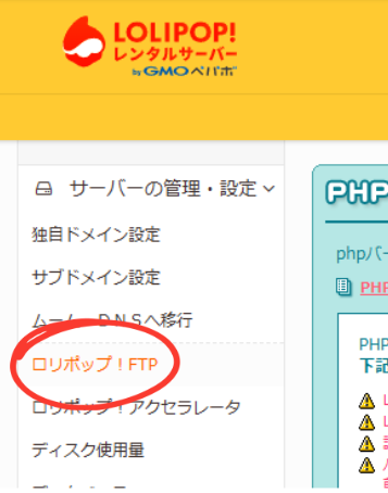 まずはロリポップにログインして、ロリポップFTPにアクセス。